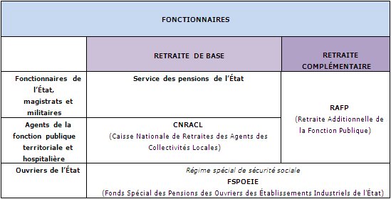 AccueilTableau récapitulatifAgents titulaires de l'État civil et magistratsMilitairesAgents non titulaires de l'Etat et des collectivités publiquesFonctionnaires territoriaux et hospitaliersOuvriers de l'EtatSimulation retraite fonctionnaireContact